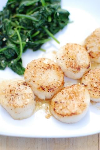 - Add 1/4 cup grapefruit juice and 2 tbsp butter and cook for another 3-5 minutes, until sauce has reduced and butter has started to brown. Remove from heat and spoon over scallops. Serve alongside your favorite vegetable (I like some gently sautéed spinach with garlic – it’s only one extra ingredient to add to your list!).